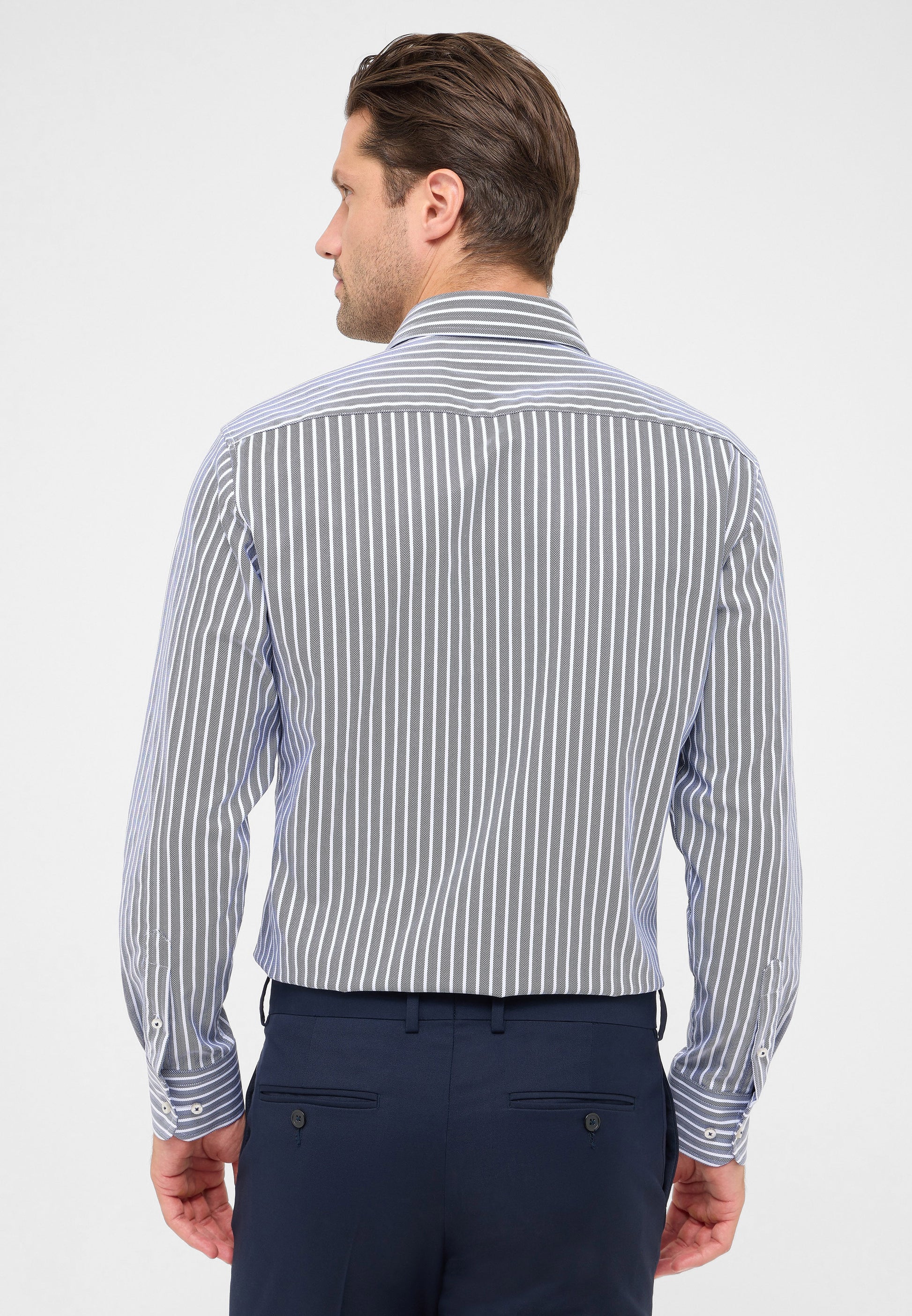 Made from 100% cotton, the Herringbone Stripe offers a refined level of elegance. Presented solely in a Modern fit with a tailored spread collar, this meticulously crafted striped shirt is an exceptional addition to any wardrobe.