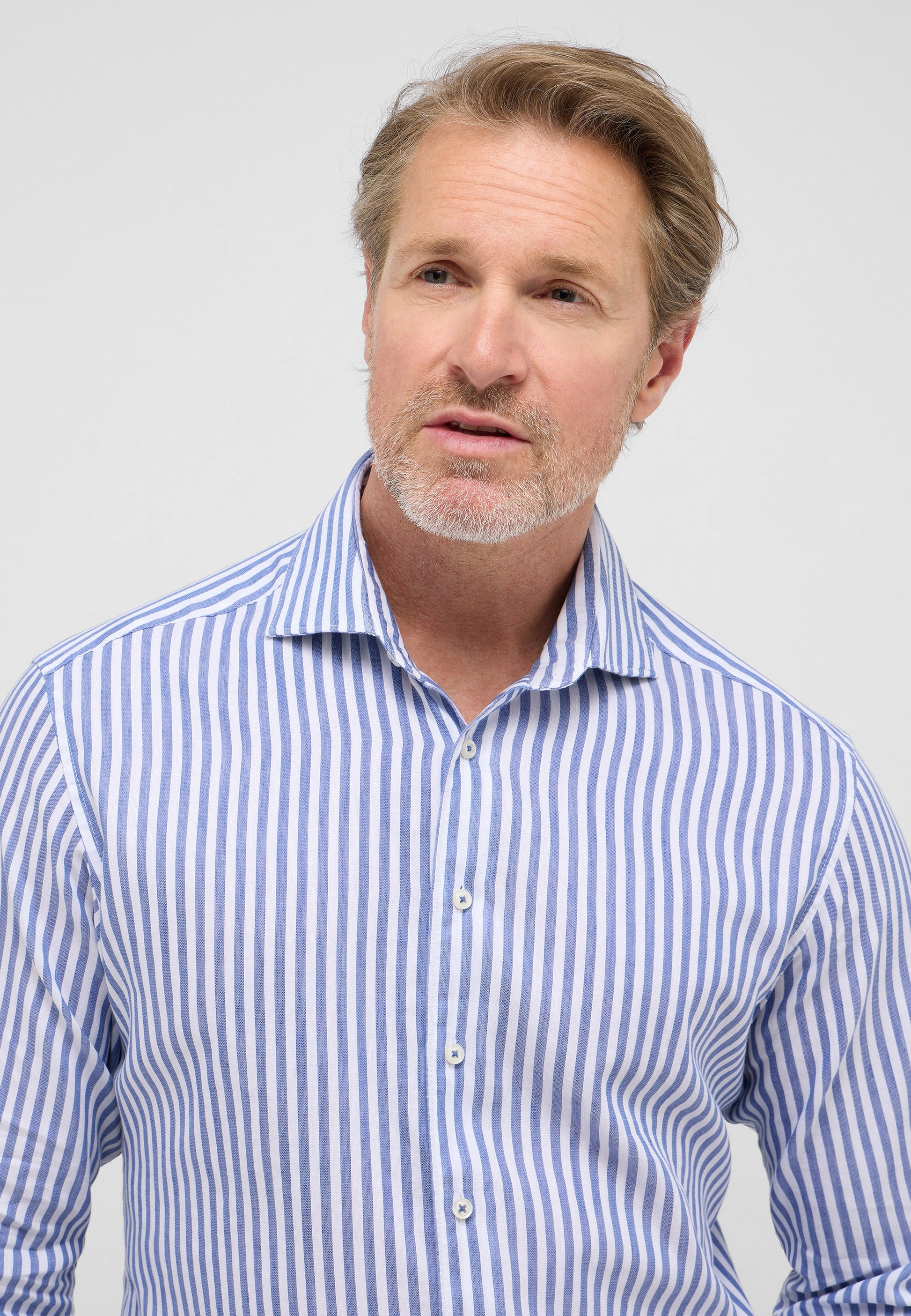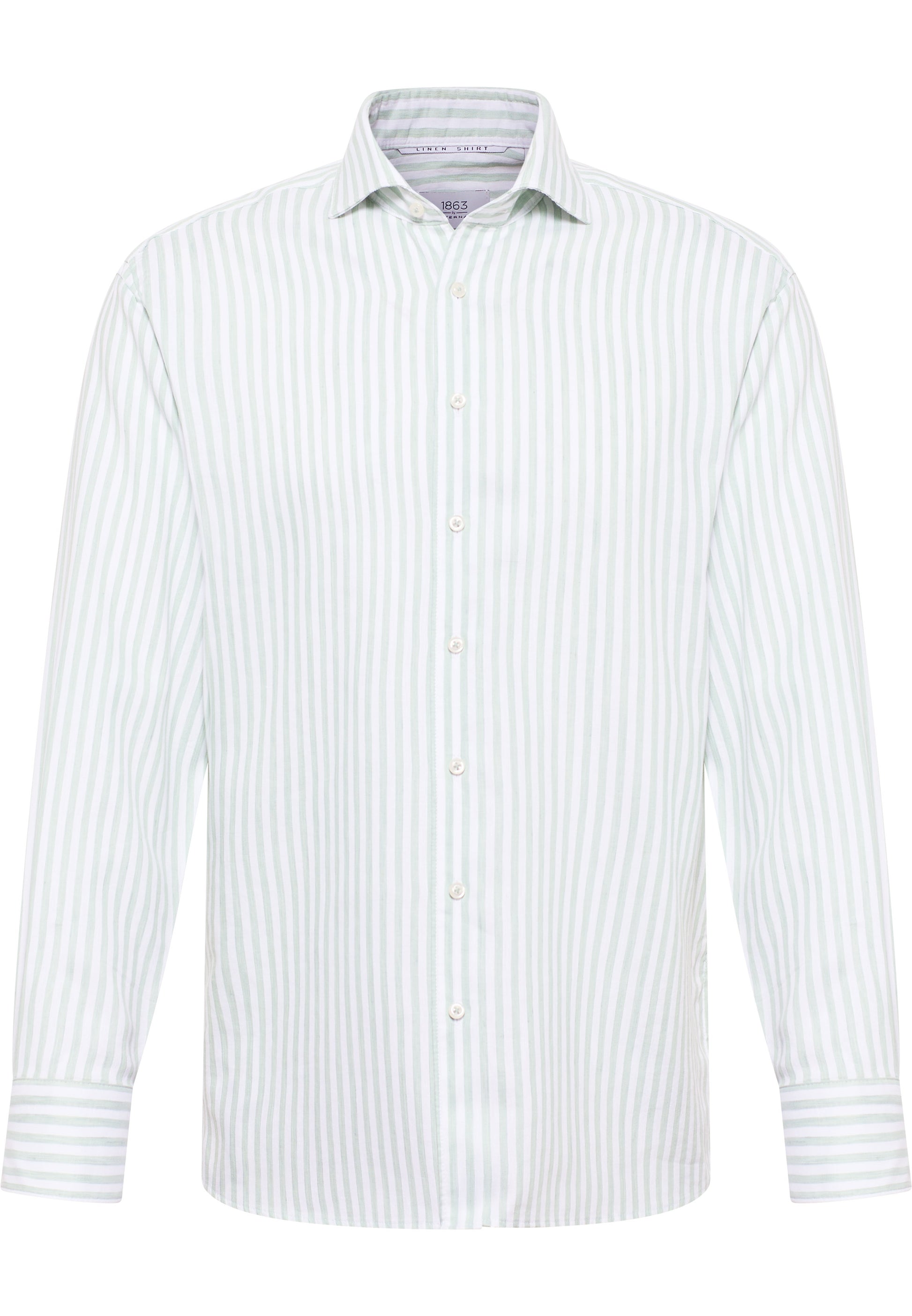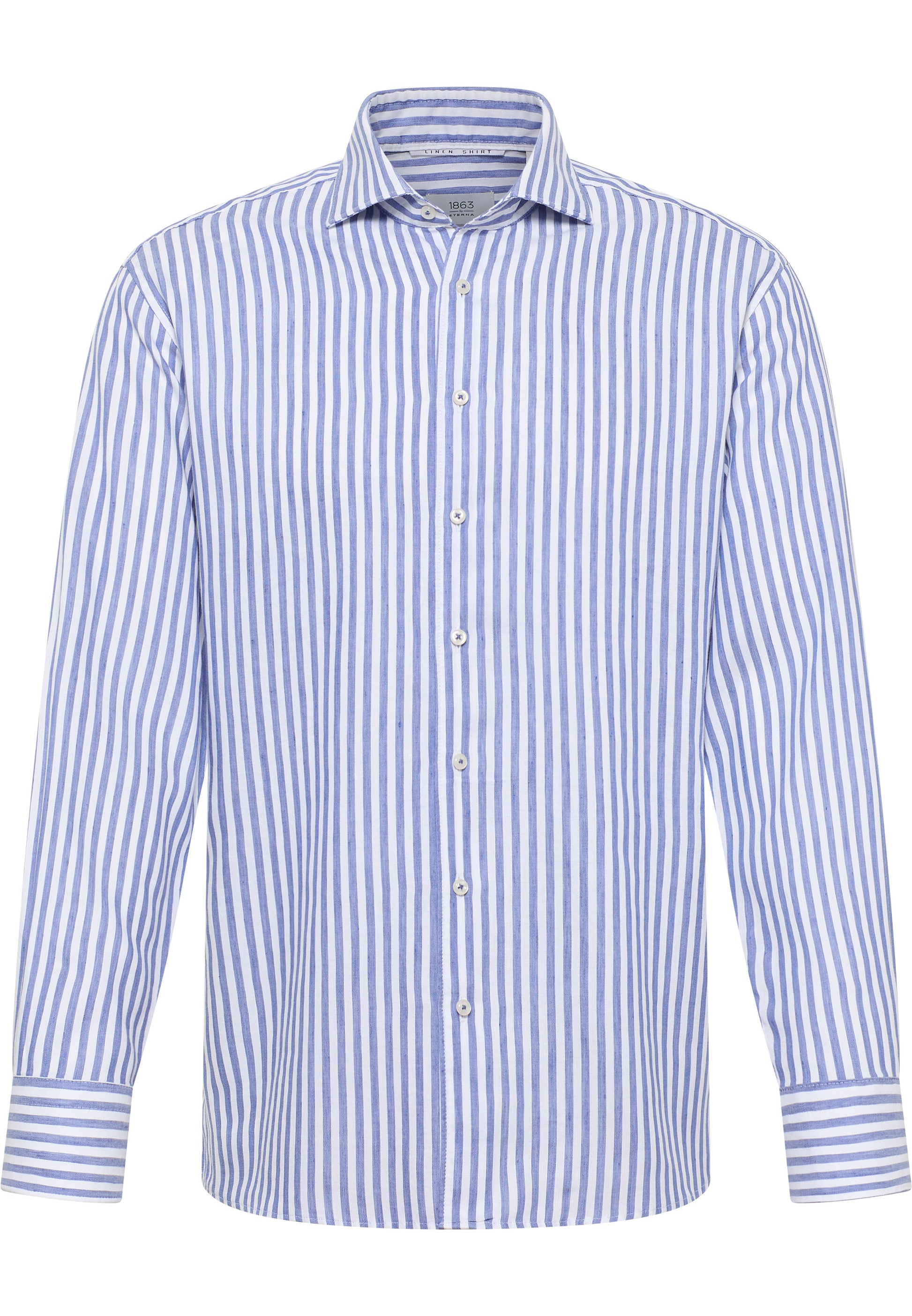 The 1863 by ETERNA shirt masterfully blends soft cotton with premium linen for a lightweight, breathable feel and refined summer style. Featuring a tasteful stripe, it is crafted from easy-care twill fabric (59% cotton, 41% linen) that feels cool and comfortable on the skin. Designed with a shark collar and a slightly shortened, rounded hem for a modern silhouette, it can be worn untucked for a relaxed yet tailored look—offering a sophisticated update to the classic shirt, perfect for effortless, polished dressing.