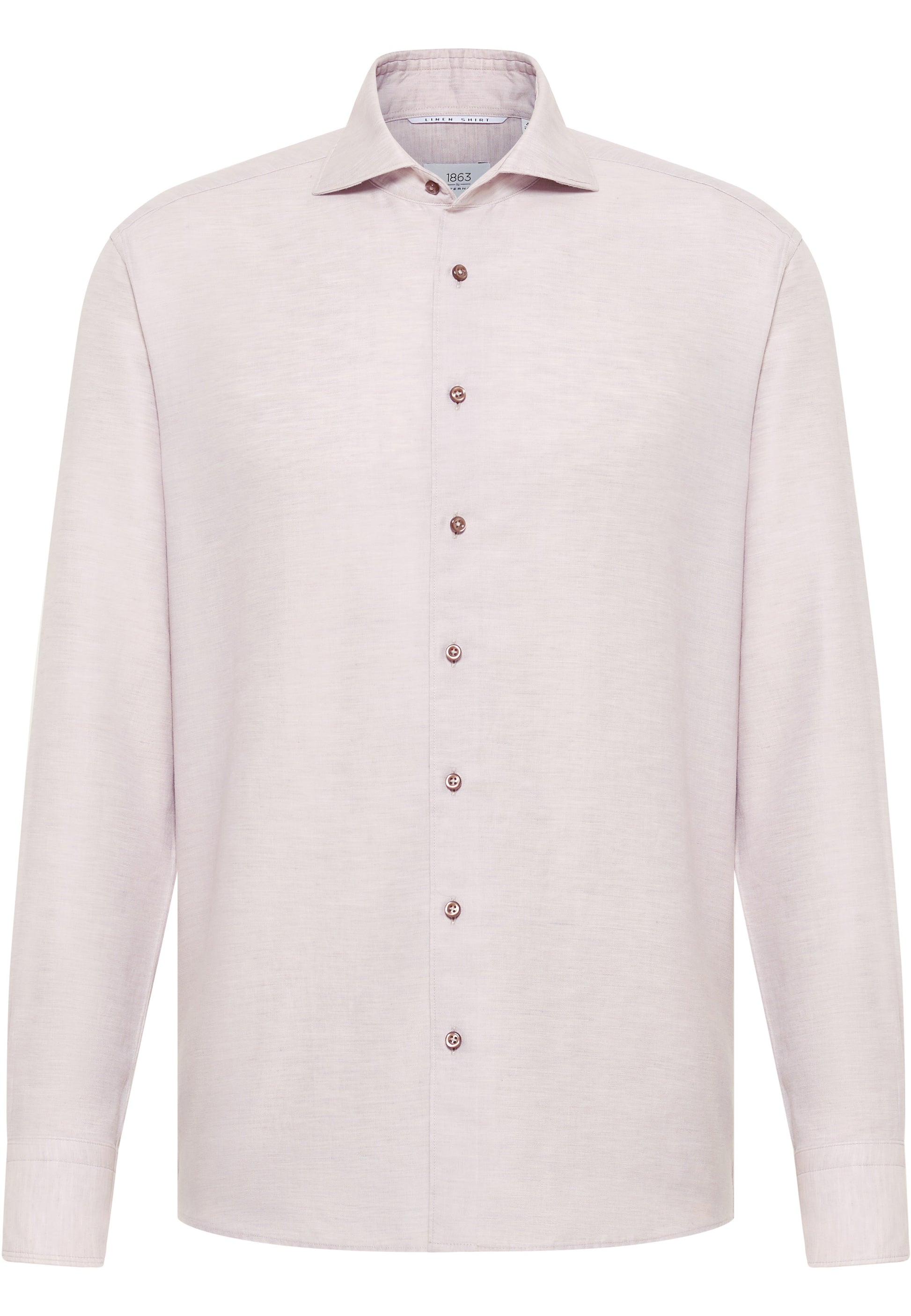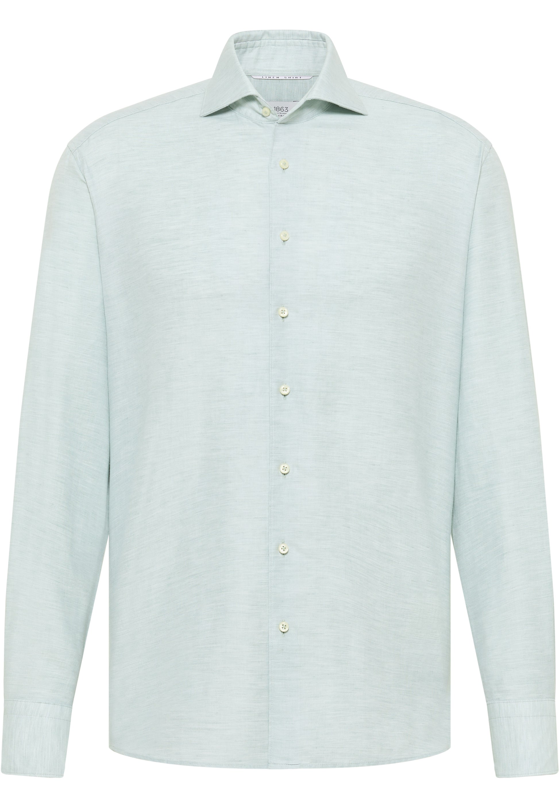 Expertly blending premium cotton with fine linen, this solid shirt offers versatile summer elegance. The superior easy-iron twill composition of 59% cotton and 41% linen delivers lightweight breathability with a refreshing feel against the skin. Featuring relaxed collars and cuffs for modern styling, its Kent collar and shortened, rounded hem allow for a sophisticated untucked option, enhancing its casual-refined versatility.